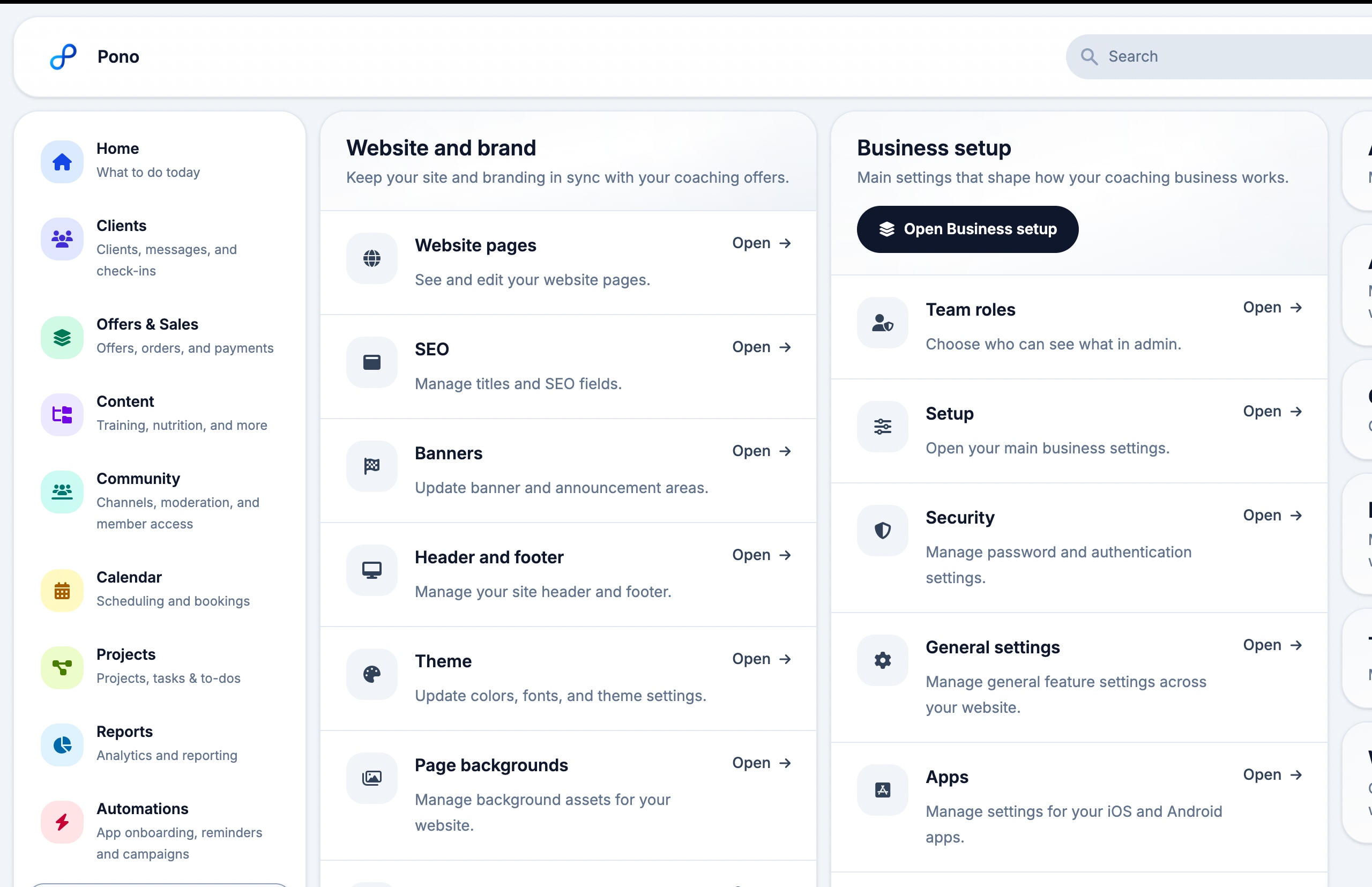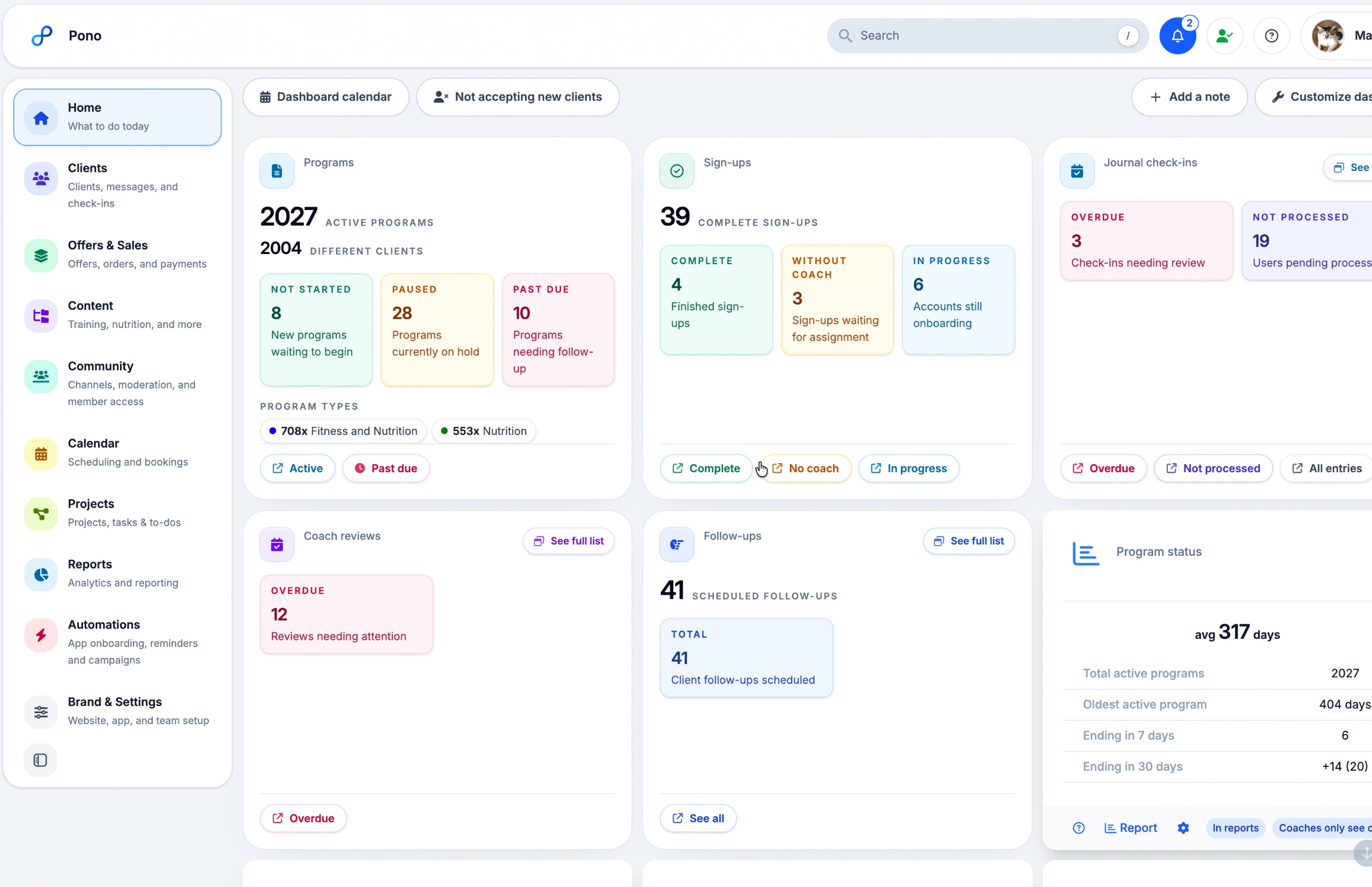 Whether you are a solo coach, a multi-coach team, or a larger brand, Pono gives you the breadth that serious coaching businesses need in one connected platform.