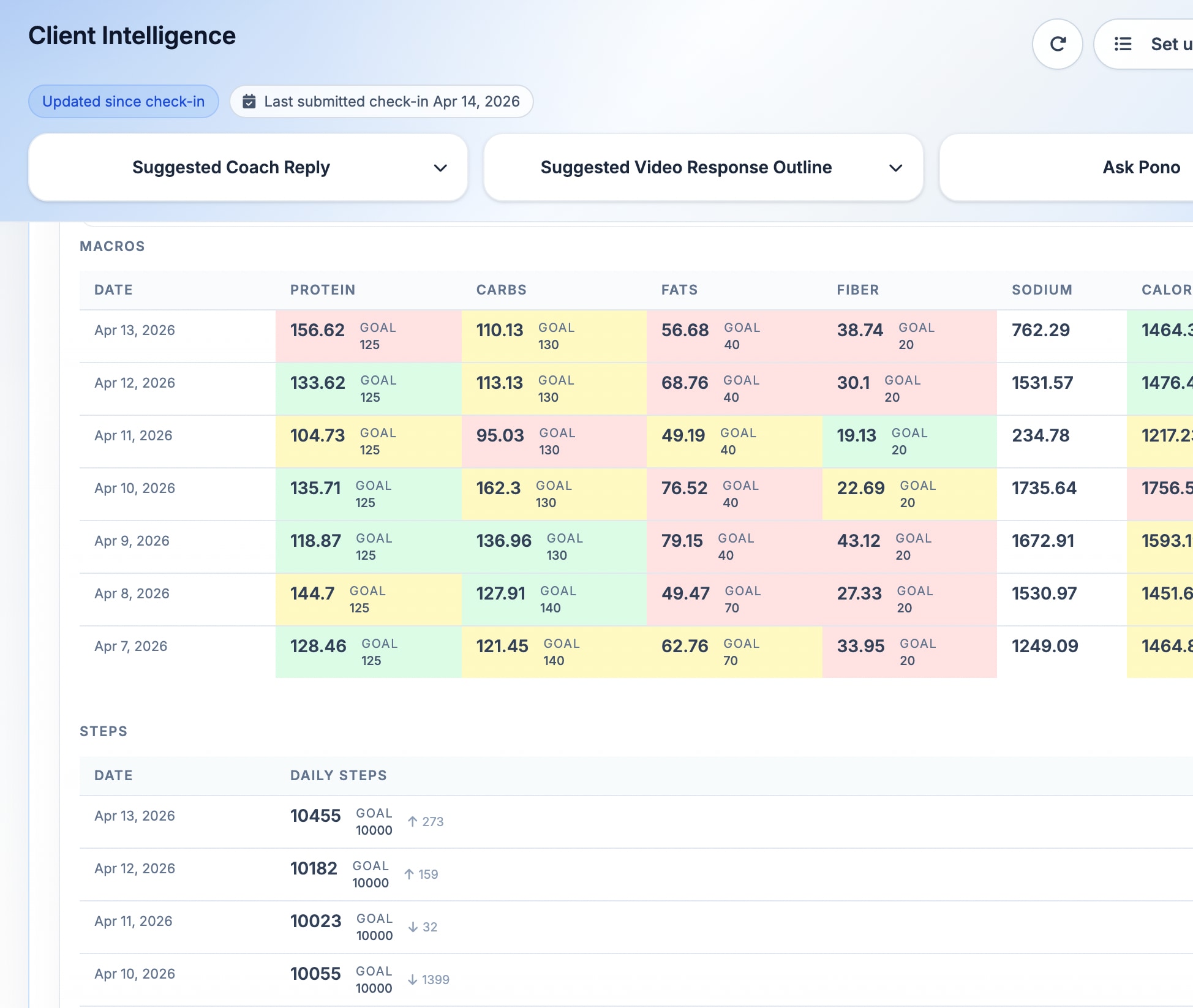 PonoAI delivers insights, summaries, recommendations and decision support right where you need them, inside check-ins, training, nutrition, activity, forms, orders, and more.